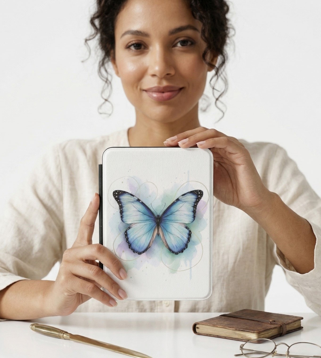 A lightweight, elegant Kindle case that brings a touch of watercolor whimsy to every page. The soft satin finish showcases a delicate blue butterfly framed by gentle washes of color — subtle enough for daily use, striking enough to brighten a commute or reading nook. Built from smooth PU leather with a soft fabric interior, […]